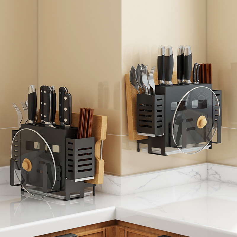 Stainless steel kitchen cutter deck in one shelf wall mounted chopstick cage tool multi-function pot cap