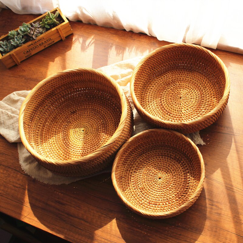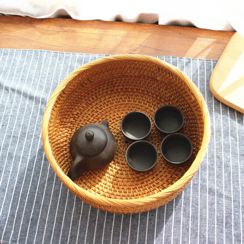 Vietnamese Autumn Vine-made Fruit Pan Hand Woven Containing Basket Zero Food Pan Bamboo Woven Basket Tea Table Bamboo Products Fruit Pan Bamboo Basket