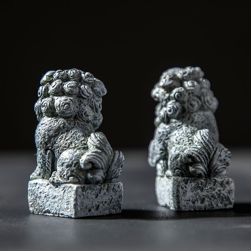 A pair of small lions (note the size) A pair of big lions (note the size) Bridge ornaments (length 5 cm) Stone grinding ornaments (height 3 cm) Well ornaments color random (height 2 5c