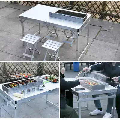 Special outdoor folding table and chair set for barbecue grill, aluminum alloy portable stalls picnic mahjong car table