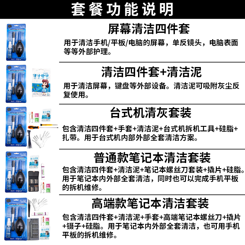 Screen cleaning four-piece set Screen cleaning Four-piece set Cleaning mud Desktop cleaning set Ordinary notebook cleaning set High-end notebook cleaning set
