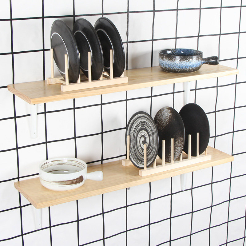 Shelf on the wall large load-bearing kitchen shelf suspended partition solid wood one-word partition Nordic wall-mounted bookshelf