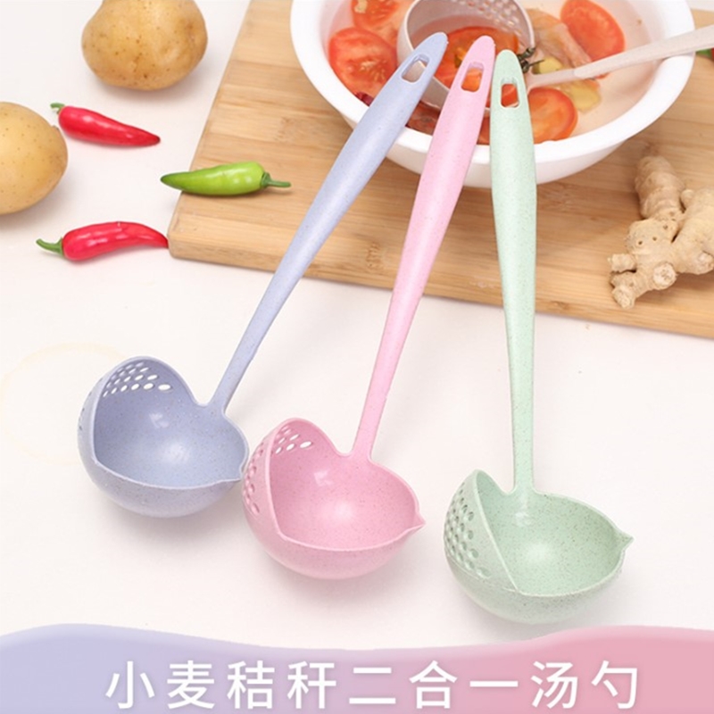 Dual-purpose two-in-one spoon Colander wheat straw environmental hot pot large spoon Colander plastic funnel tableware