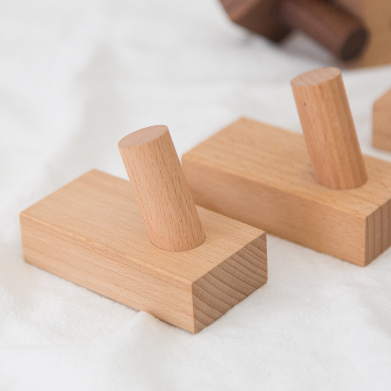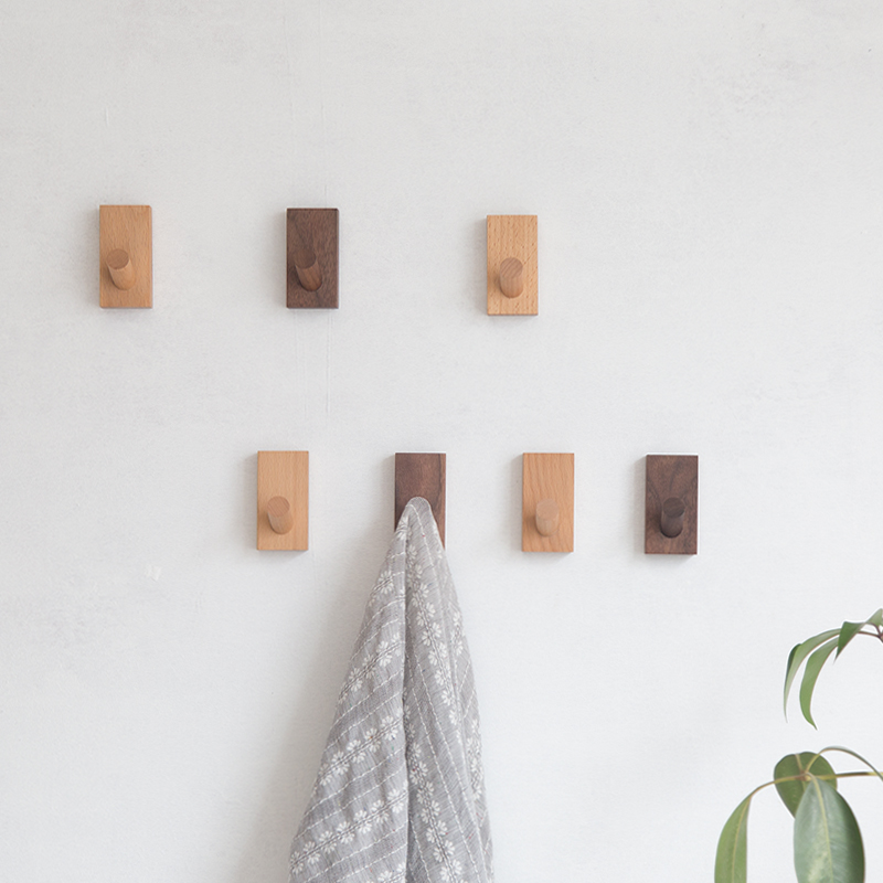 Solid wood hanging hook Single wooden hook hook hole-free wall hanging door rear entrance clothes key coat hook