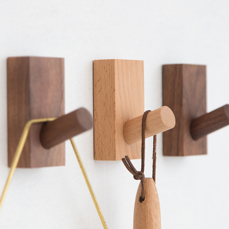 Beech single hook with screw Beech single hook with glue Walnut single hook with screw Walnut single hook with glue