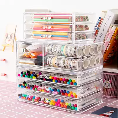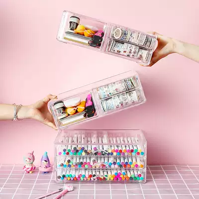 Stationery storage box desktop rack desk key pen transparent artifact desk hand account cute girl heart