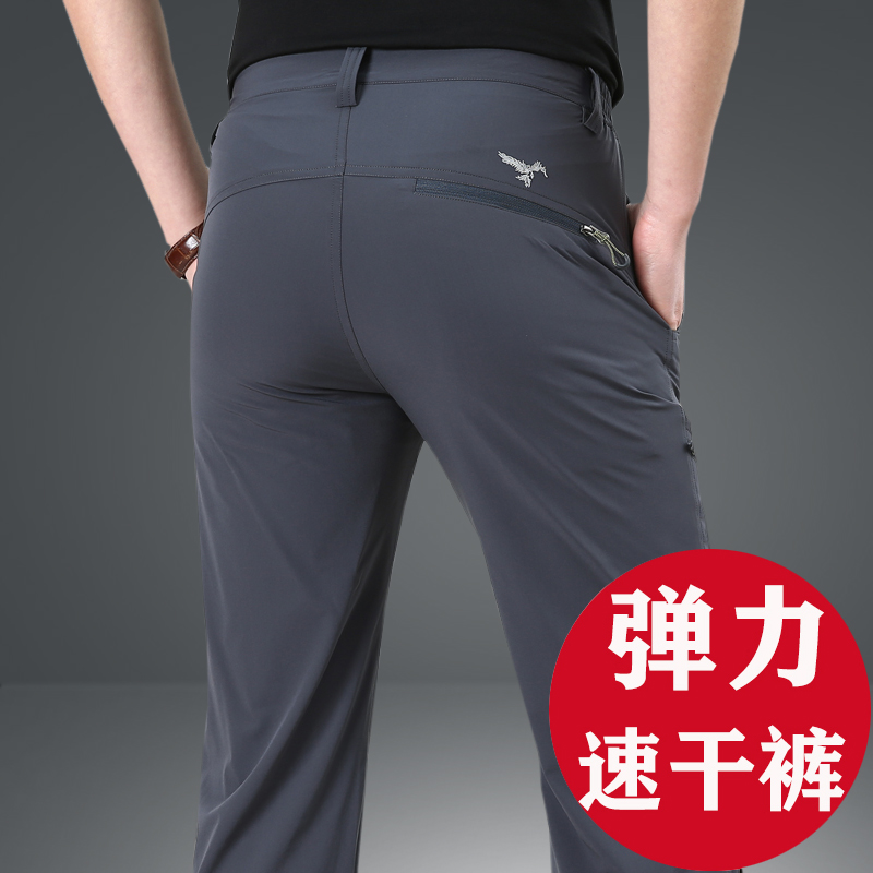 Outdoor Speed Dry Pants Male Summer Ice Silk Elastic Movement Long Pants Men Ultra Slim quick dry breathable climbing casual pants-Taobao