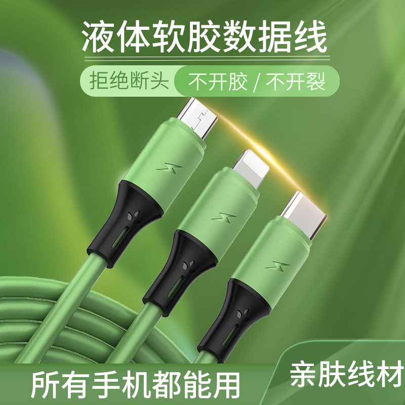 Liquid one-drag three-data line for Pinggo Android TypeC three-head multi-function vehicle charging