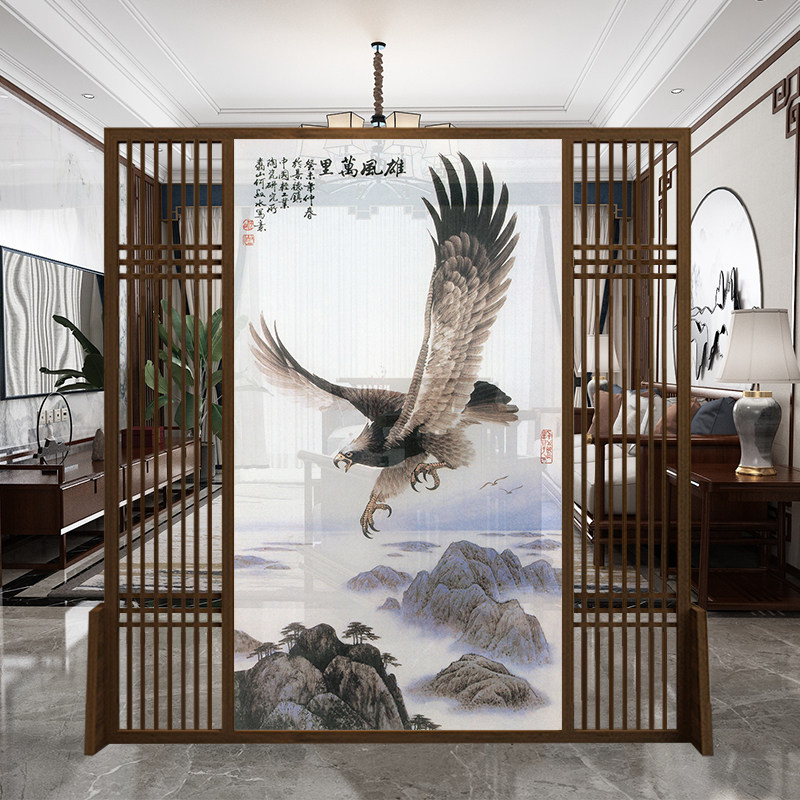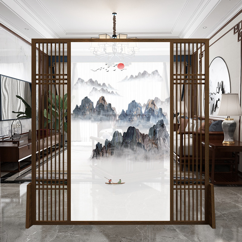 New Chinese screen partition living room decoration solid wood office mobile hotel modern shelter porch landscape seat screen