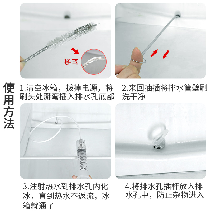 Refrigerator dredger drain hole Household water channel artifact with brush pipe tools clogged cleaning refrigerator compartment mouth