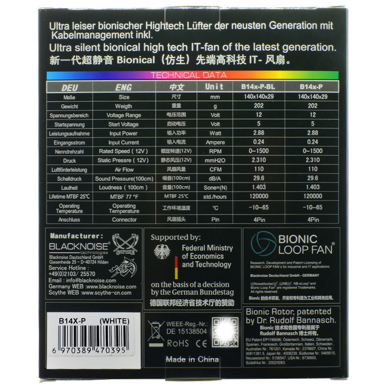 Big sickle Scythe NB-ELOOP B14X-P White 14cm4-wire PWM speed control CPU fan chassis