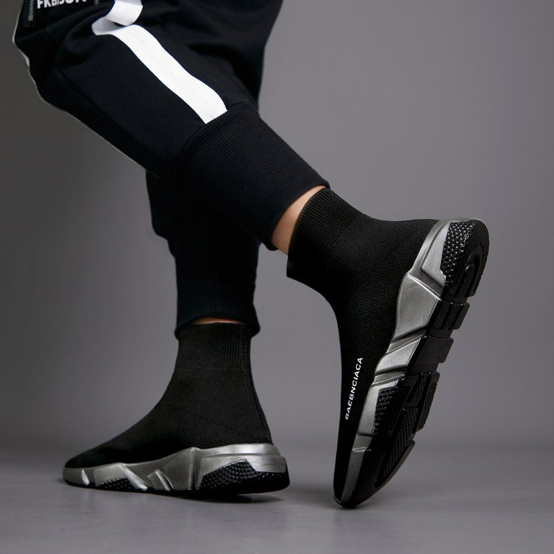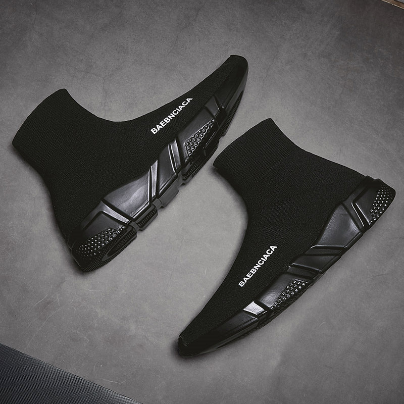 2023 New men's shoes summer high - gang flexible mesh panel shoes hundred socks tidal sports casual black