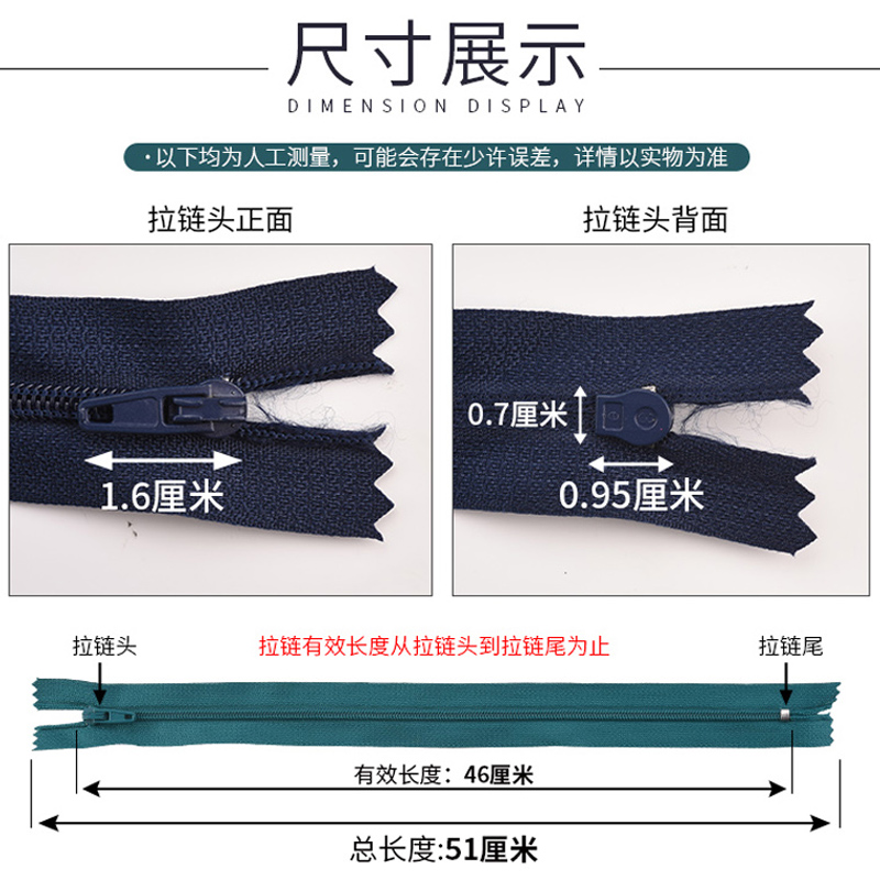 51 cm open chain zipper nylon black and white color pillow quilt quilt cover handmade DIY closed tail sofa cover mosquito net