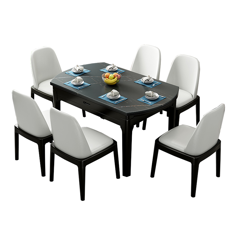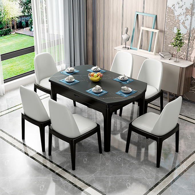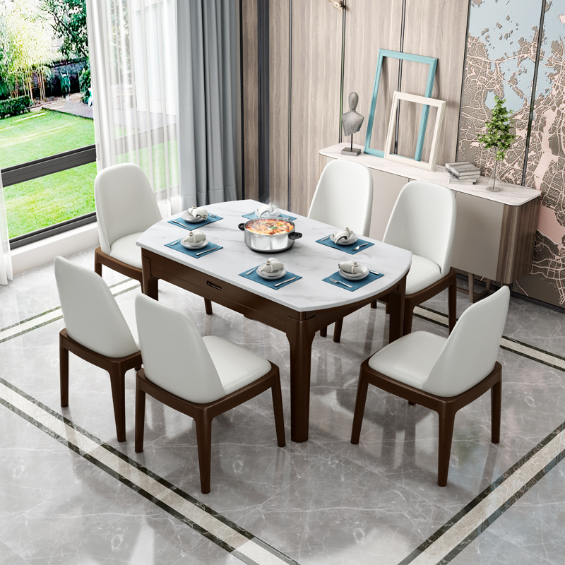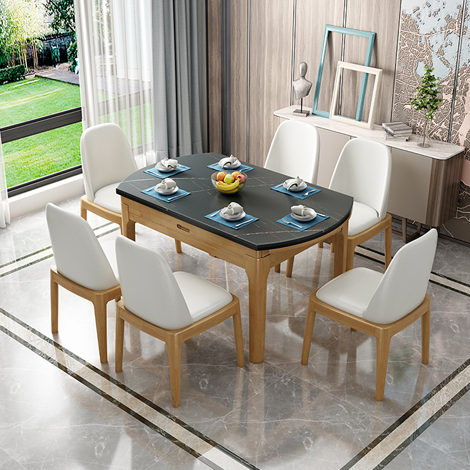 Modern minimalist slate dining table retractable folding round table Nordic light luxury marble solid wood dining table and chair combination