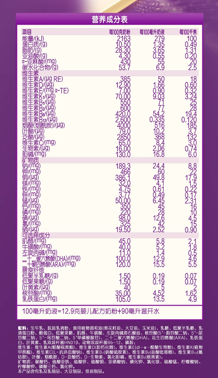 Milk food supplement nutrition