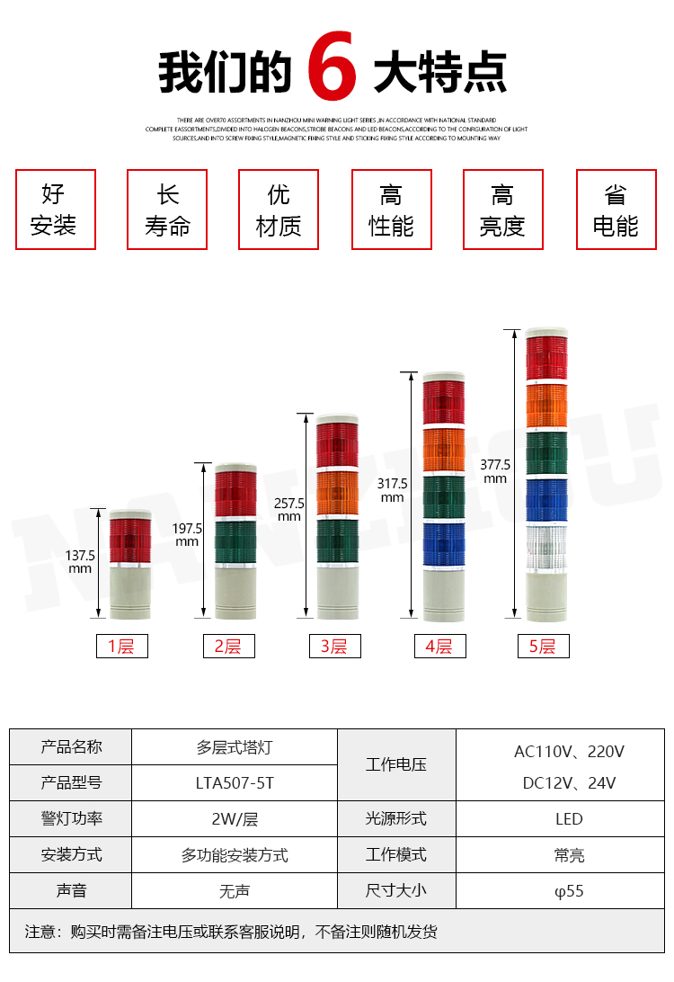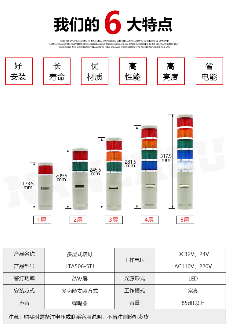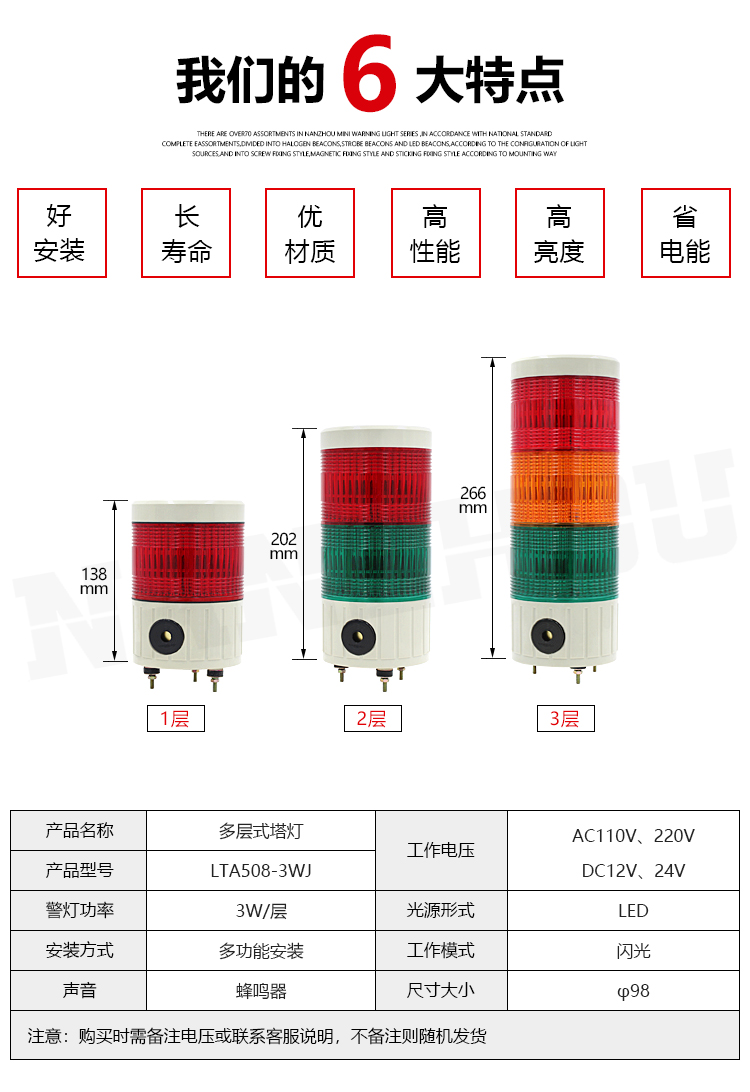 South State LTA117 multilayer 203 tower 204 light bulb 205LED swivel 508 Talking buzzer indicating alarm lamp