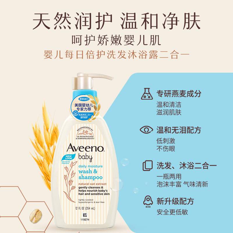 Aveeno Ai Weibo baby baby nourishing and moisturizing skin lotion shampoo body lotion Two-in-one 354ml suit-Taobao