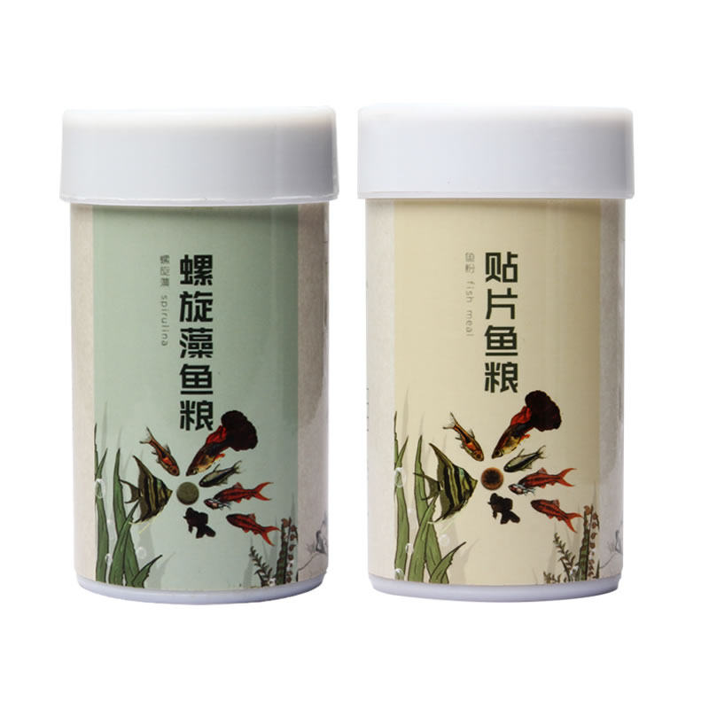 Two bottles of nutrition matching package Fish food patch (fish meal) Fish food patch (Spirulina) Small fish particle fish food (feeder)