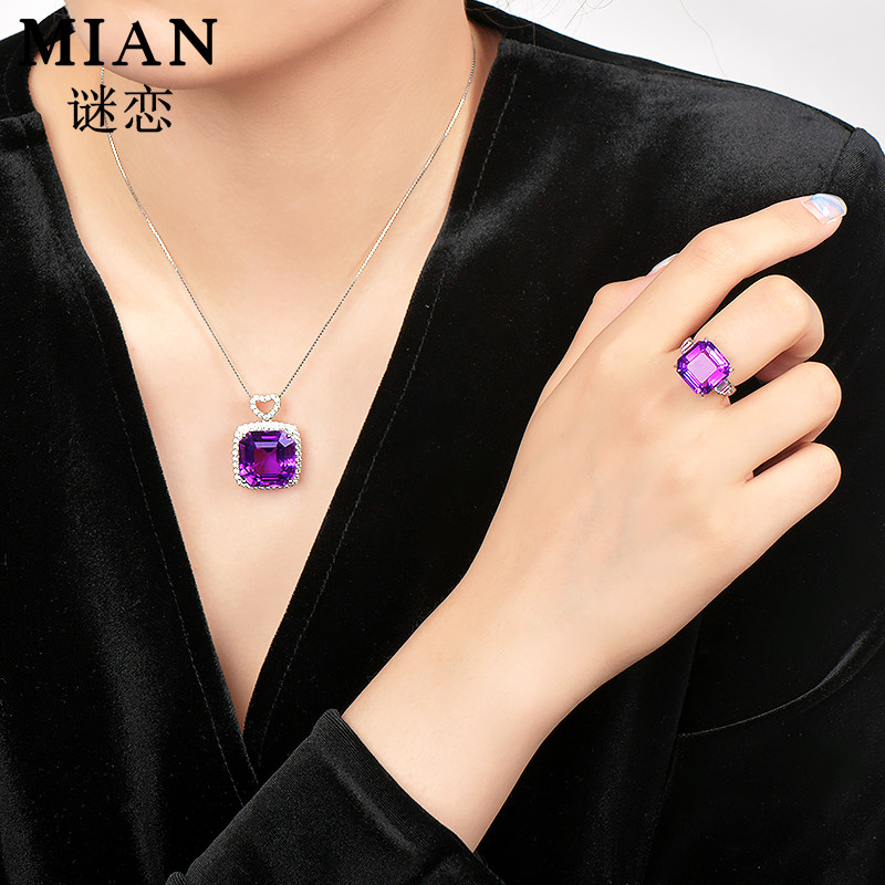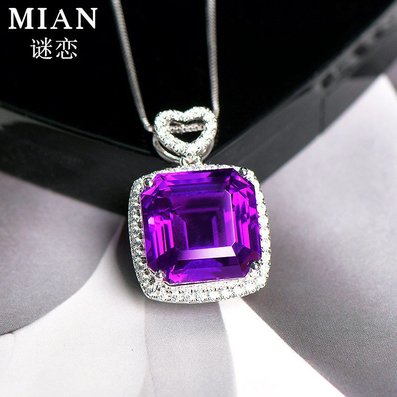 Mystery Love High Natural Amethyst Pendant Female 925 Silver Atmosphere Princess Luxury Crystal Necklace Birthday Gift