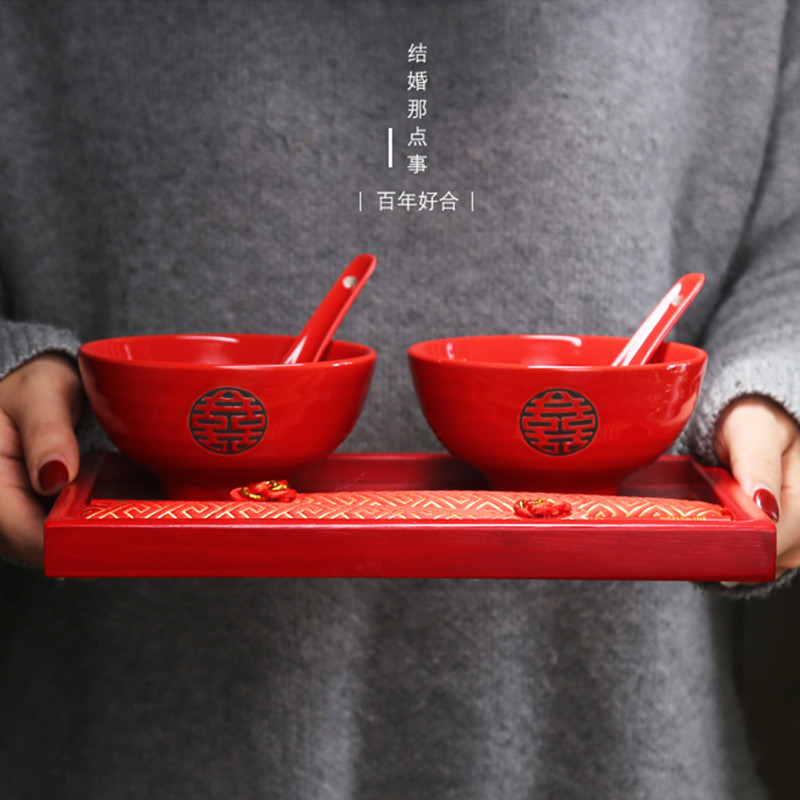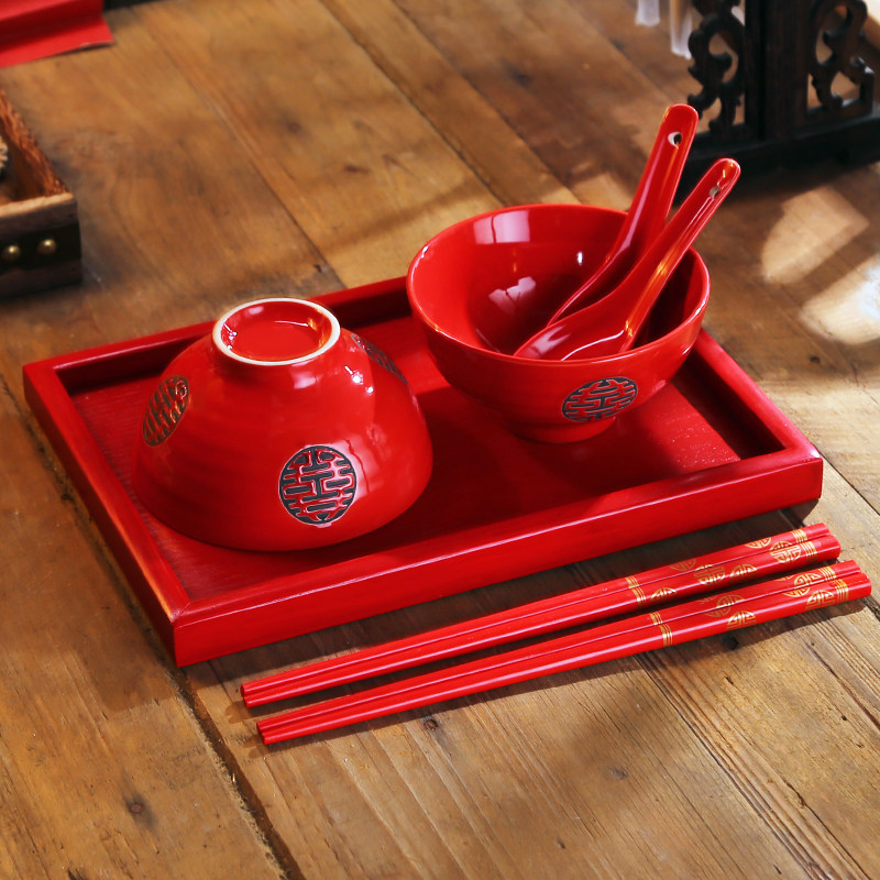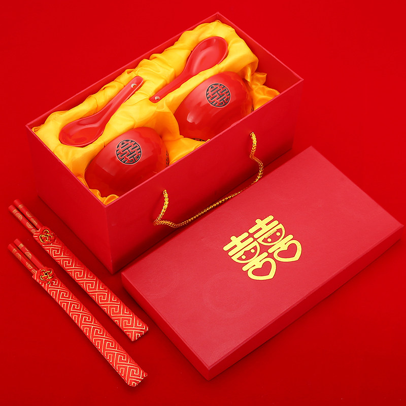 Red Bowl Leap Moon Nephew Red Bowl Household Red Chopsticks Red Bowl Red Gift Bowl Set A Pair of Gift Box Red Tableware