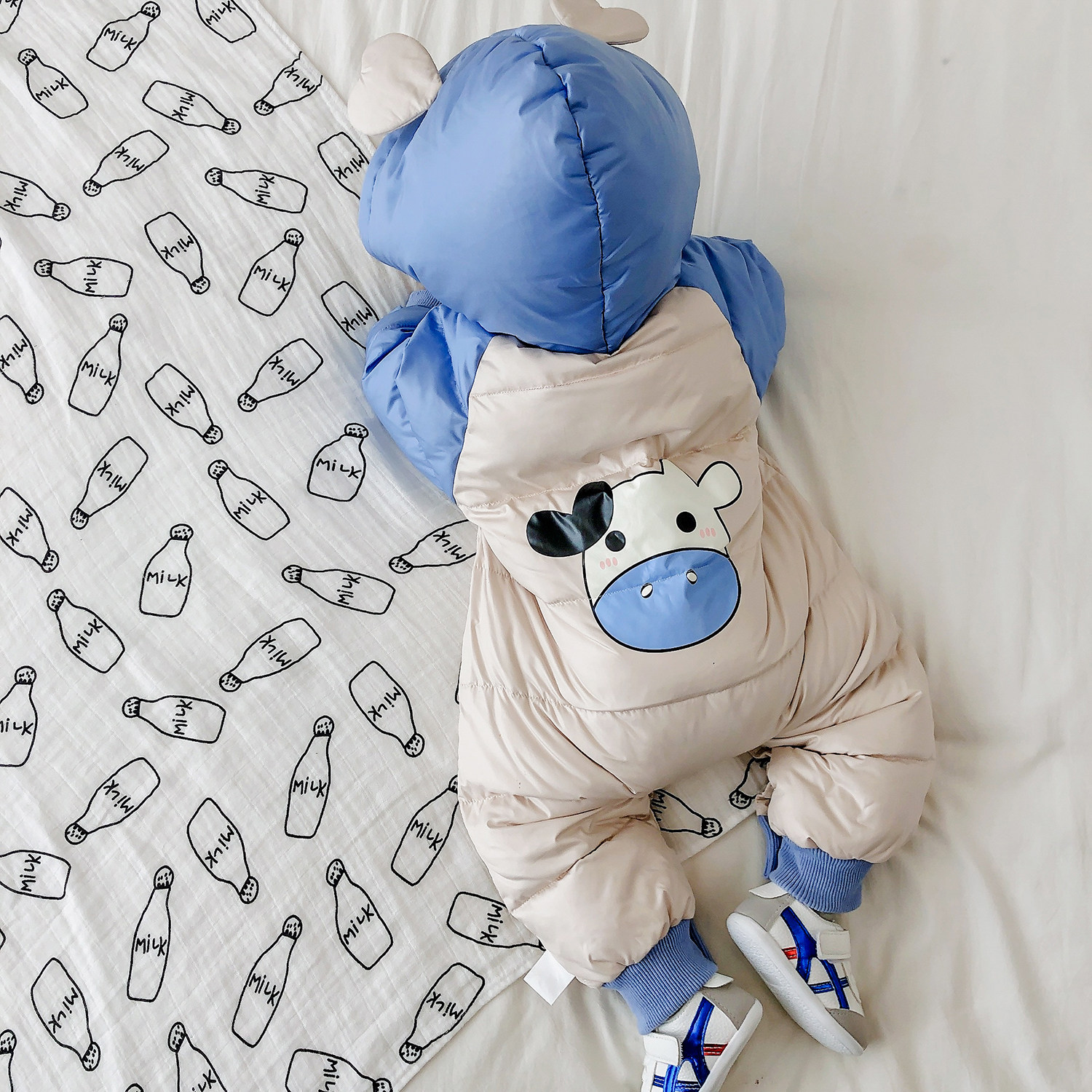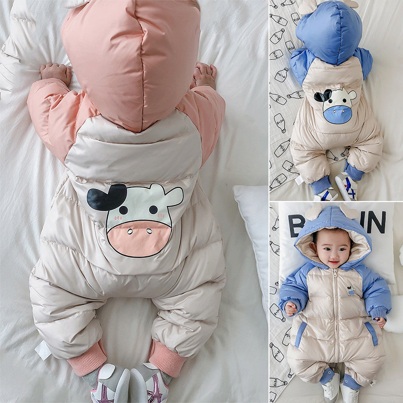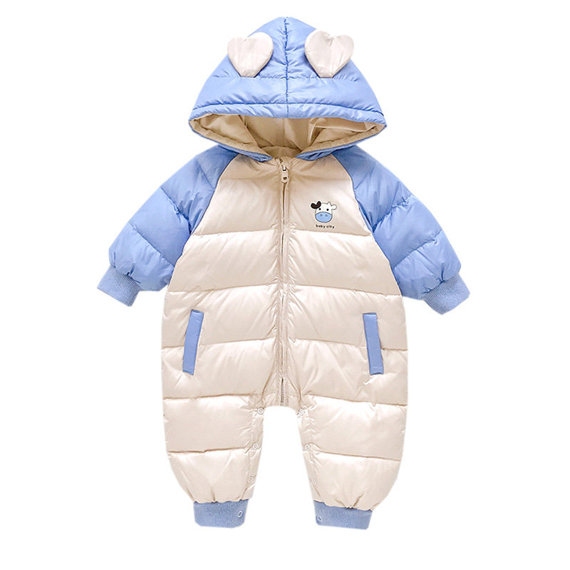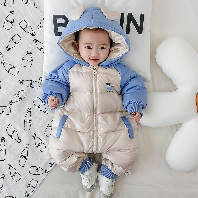 Baby down jacket one-piece winter winter clothes male baby white duck down infant female one-year-old out of the hug