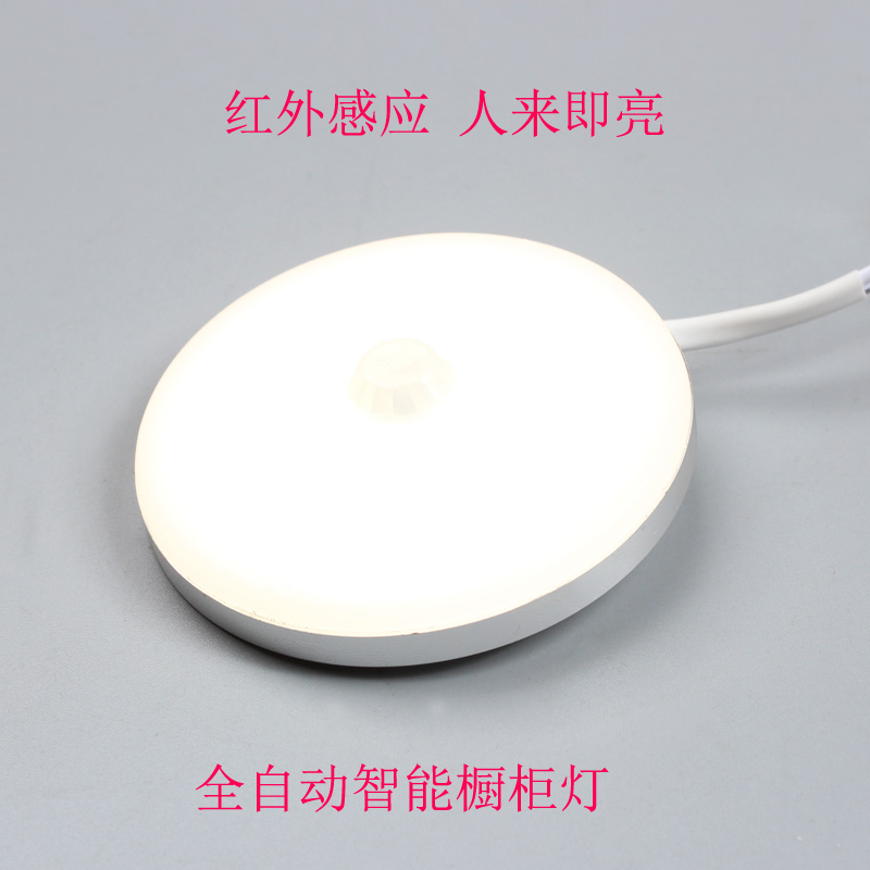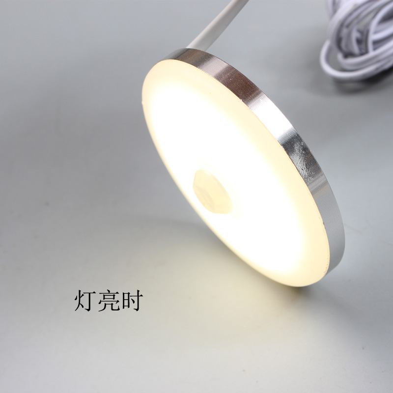 Wiring automatic induction lamp human body smart home aisle wardrobe bedroom bedside lamp night cabinet round plug-in