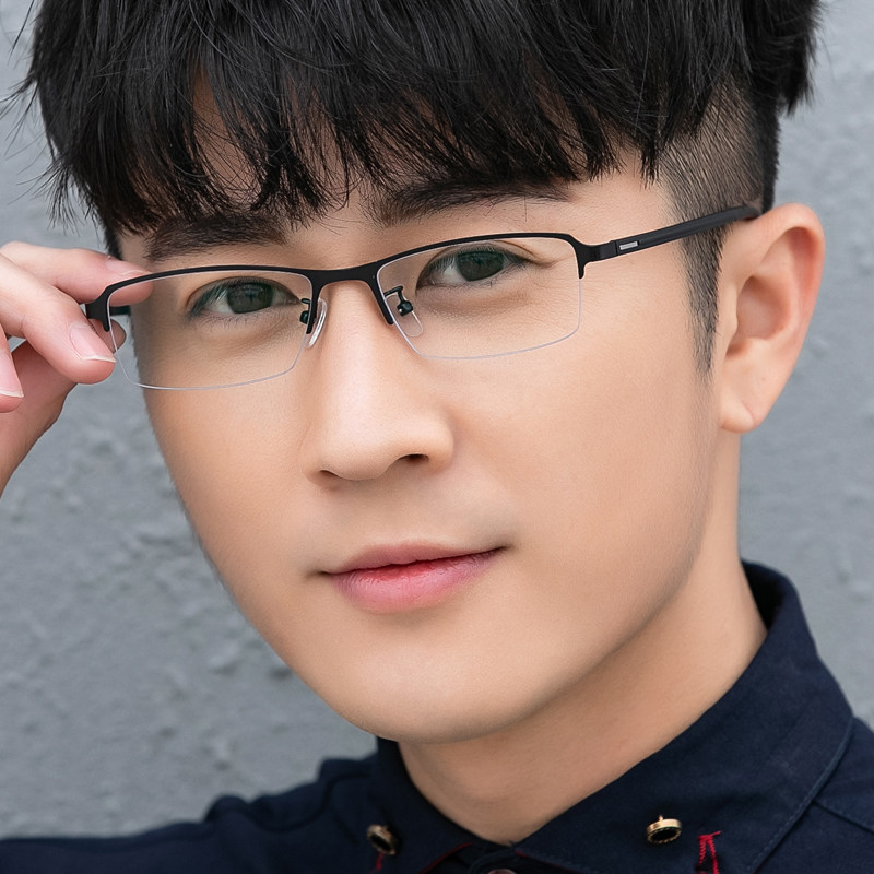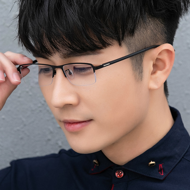 Myopia glasses anti-blue light radiation men and women flat light eye protection business half-frame discoloration aspherical degree anti-fog
