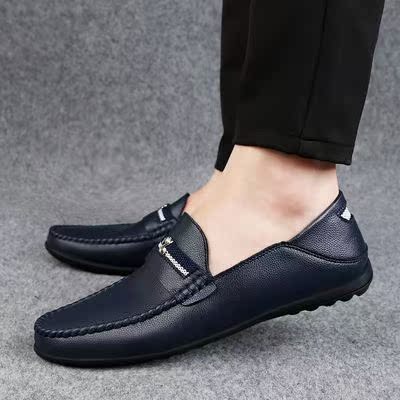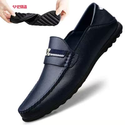 2022 Summer Bean shoes Men's Korean version Leisure genuine leather breathable slob shoes One foot pedal Soft bottom Inron 100 hitch