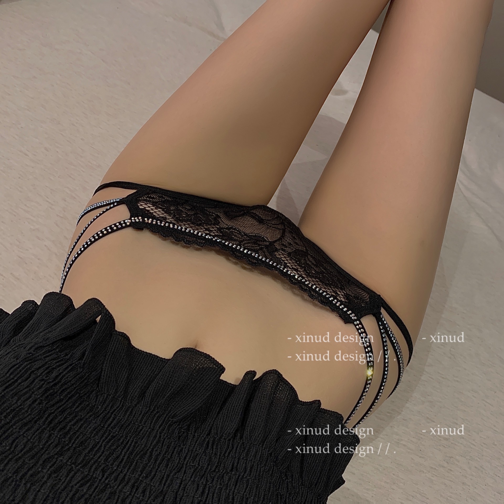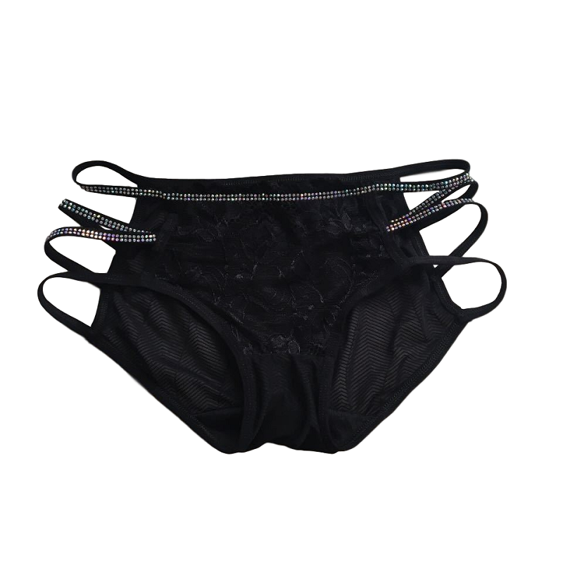 LA bright waist - leather hot drilling pants low waist sexy lace breathable comfortable hollow - band underwear