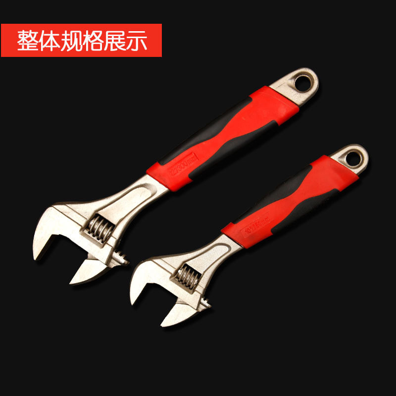 Nickel-plated handle adjustable wrench 6 inches 8 inches 10 inches 12 inches red and black two-color rubber handle nickel-iron live port