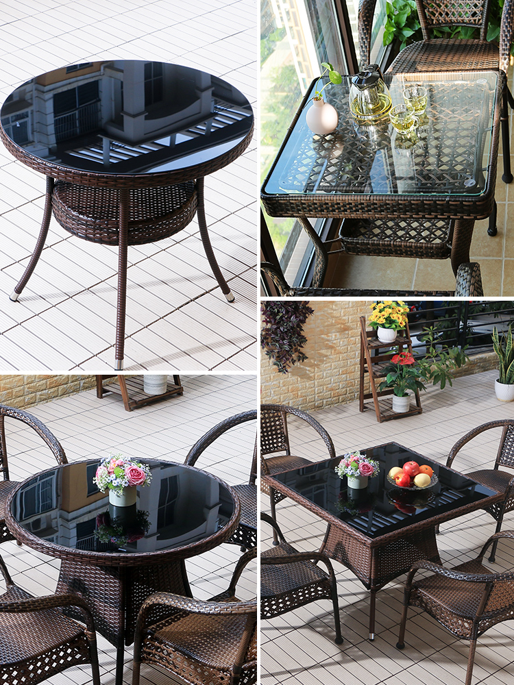 Outdoor balcony rattan table and chair outdoor courtyard wrought iron leisure coffee table backrest chair single small chair combination
