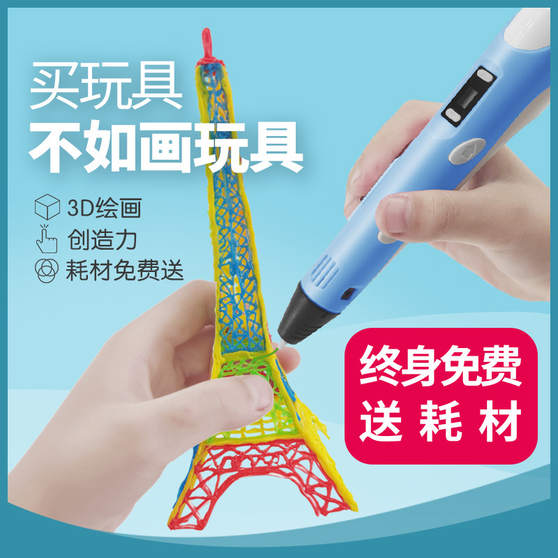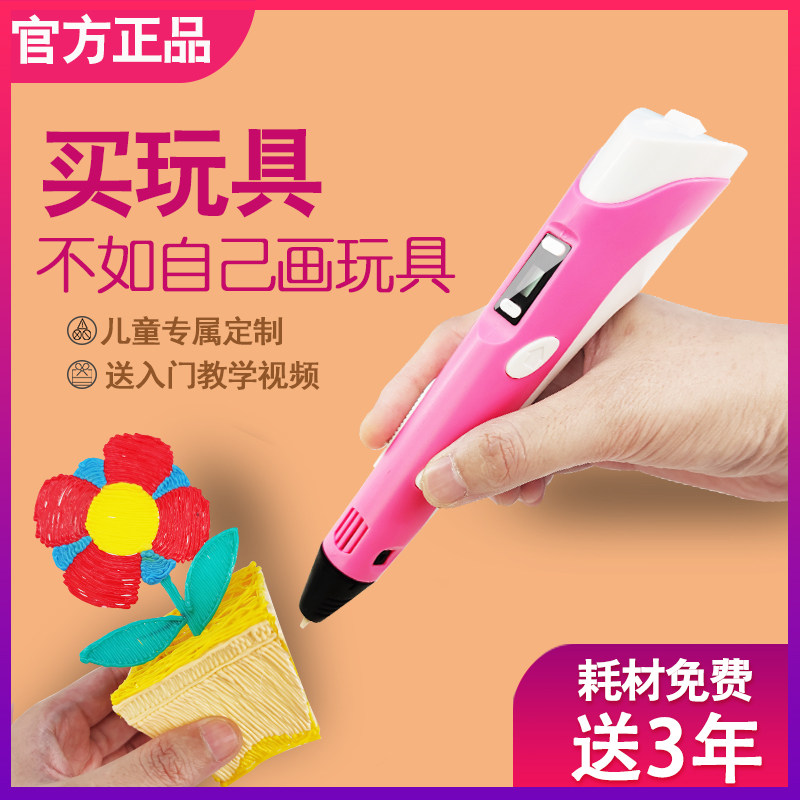 Lando 3D printing pen Children's three-dimensional low temperature wireless three-place painting pen Professional students use magical three-D graffiti pen cheap net Red shaking sound magic pen Pony Liangbi pen set of hot melt pen