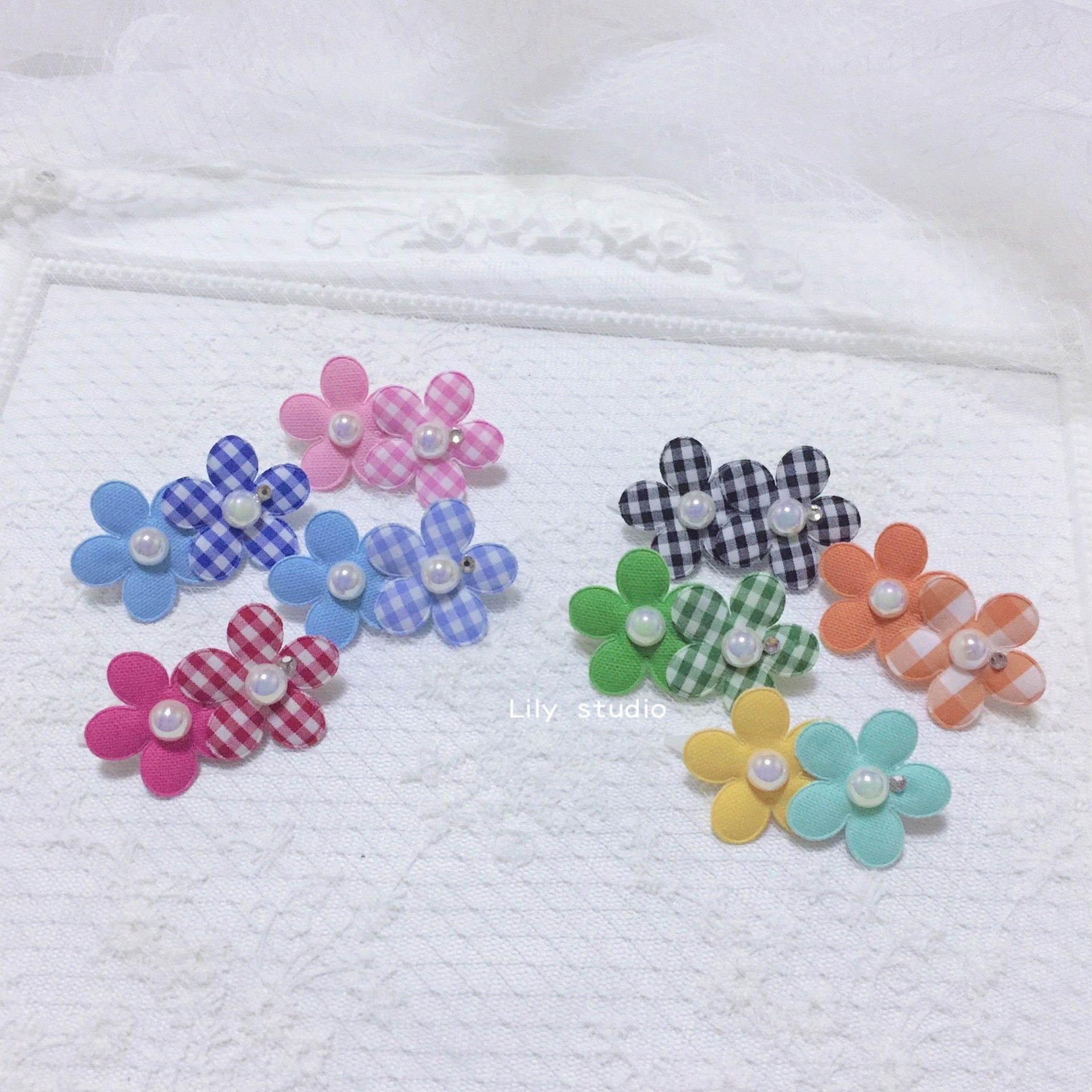 Lilystudio handmade custom South Korea imported pet hair clip plaid flower head flower Yorkshire Maltese