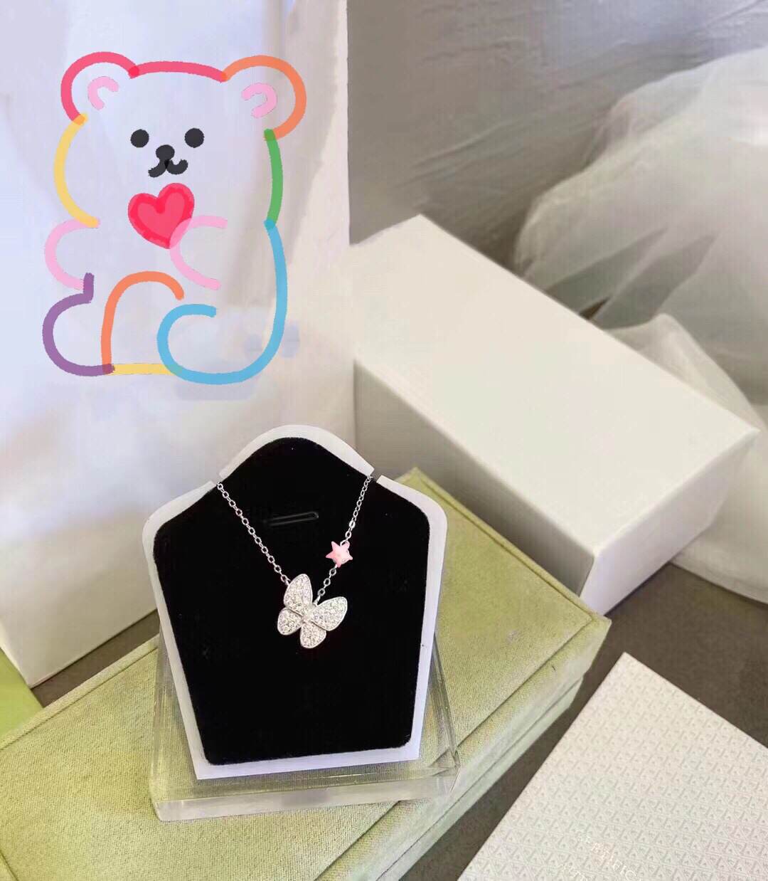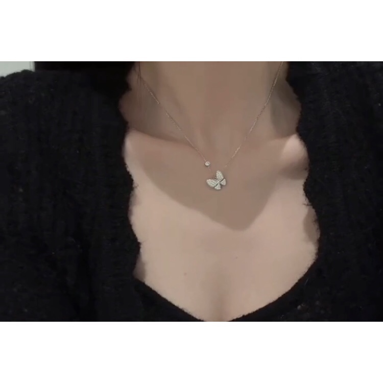 Hong Kong is born pure silver s925 small crowddesign Korean version fashion full drill butterfly necklace lock bone chain woman temperament 100 lap