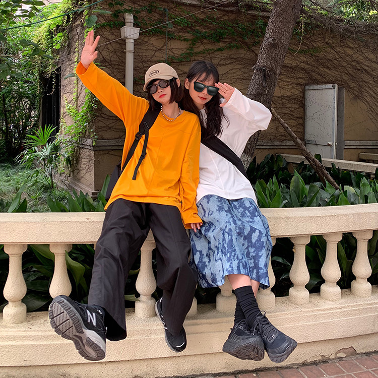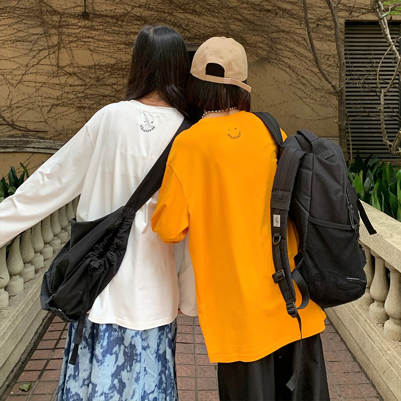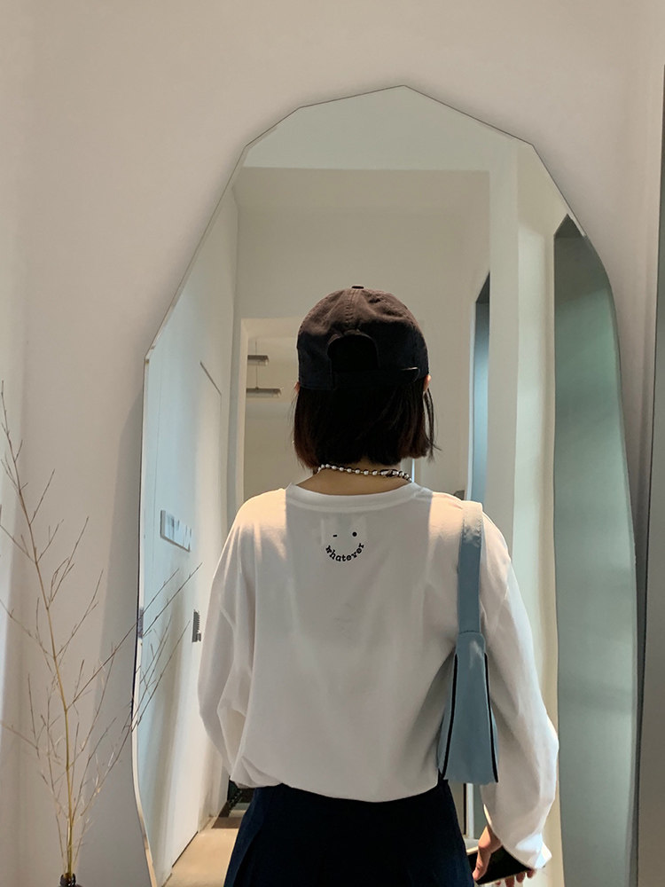RAINY homemade sunscreen T-shirt women's long sleeve solid color loose oversizeT shirt round neck white smiley top