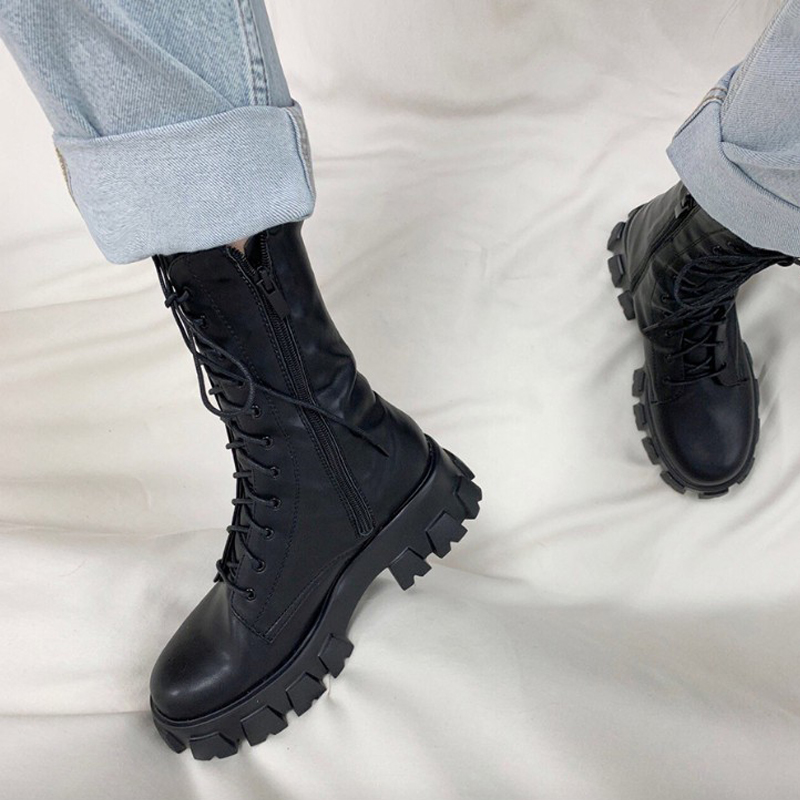 2021 autumn and winter plus velvet short tube Martin boots female Joker round head Middle tube increased thick bottom British Wind locomotive short boots