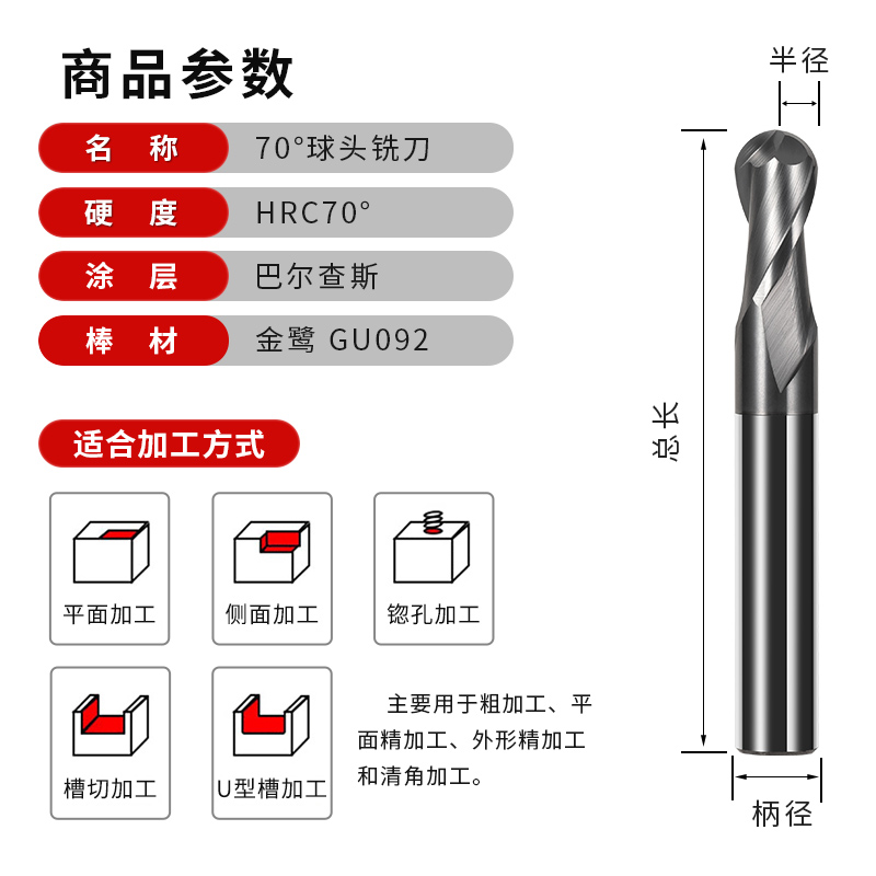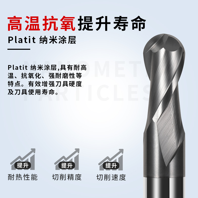 70-degree tungsten steel ball head milling cutter stainless steel titanium alloy special alloy ball knife steel with straight shank black nano coating