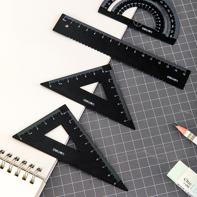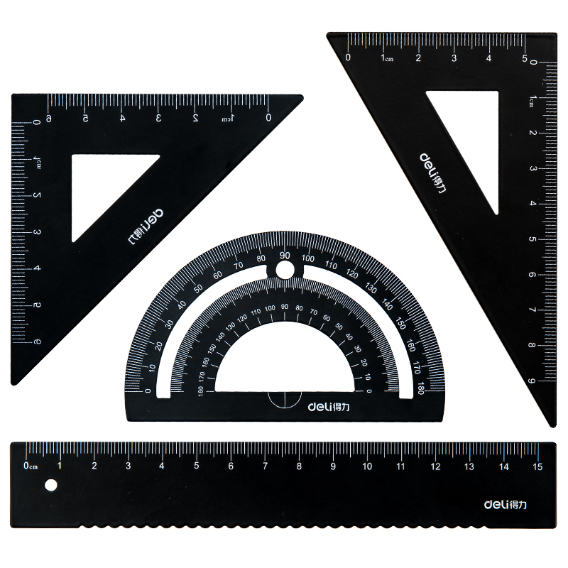 Deli metal set ruler drawing four-piece ruler for primary and secondary school students with triangle protractor exam ruler set Simple and cute children's multi-functional painting 4-piece stationery