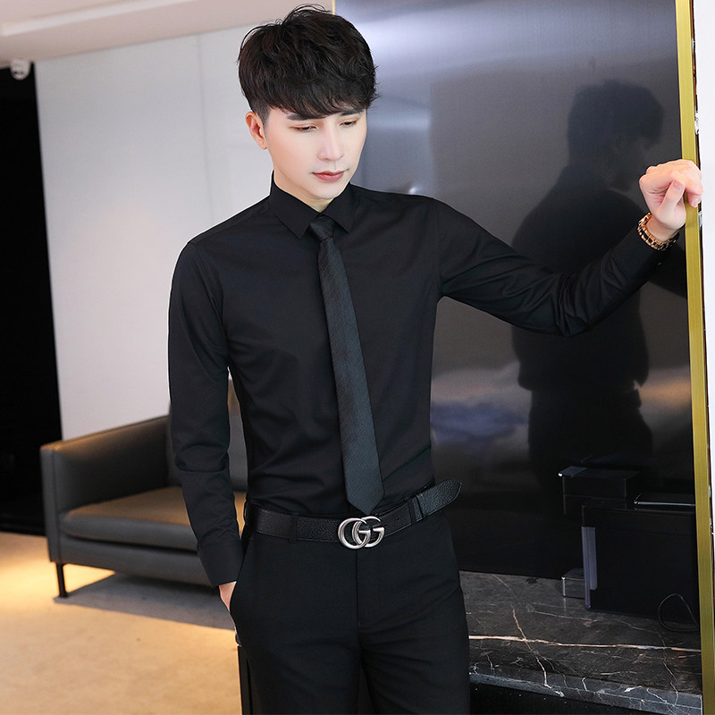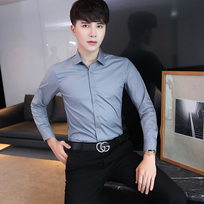 Anti-wrinkle non-iron white shirt men long sleeve business high-end professional dress shirt spring and autumn Korean slim inch shirt