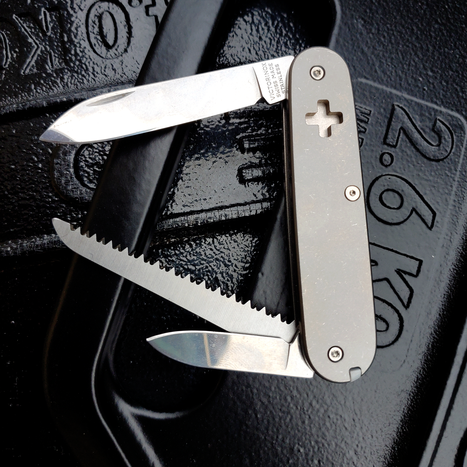 (Individual) Titanium handle Screw lining accessories etc. (full set of two layers full handle) Titanium handle Two knives and one saw (full set of three layers) Titanium handle Sample camper (full set of three layers) Titanium handle Sample climber