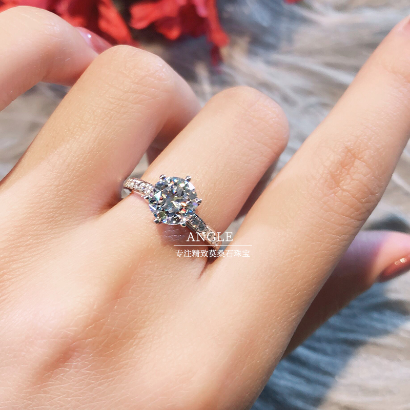 18K platinum claws micro - mosaic mountain ring ring large carat eight - heart wedding ring