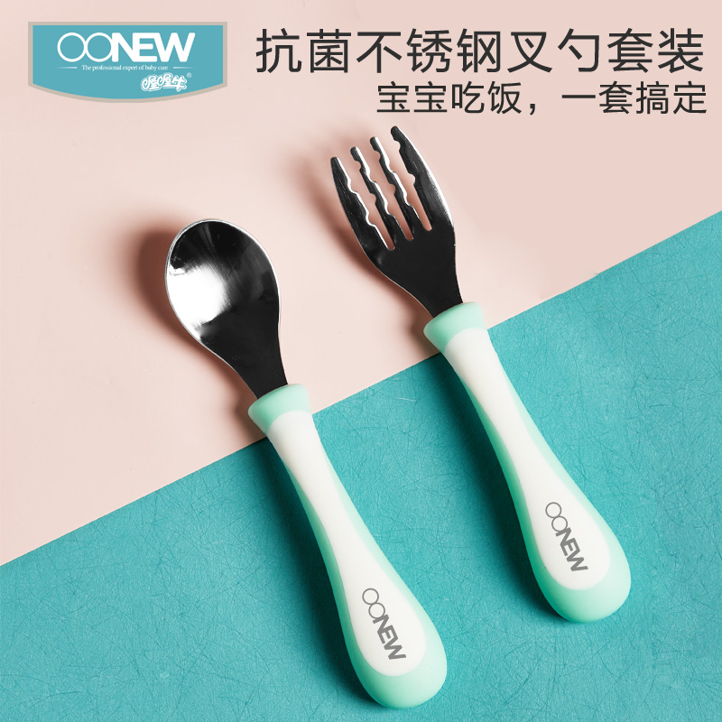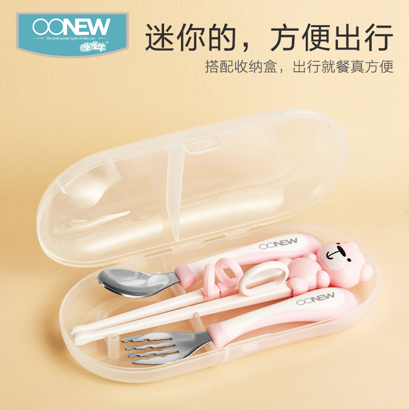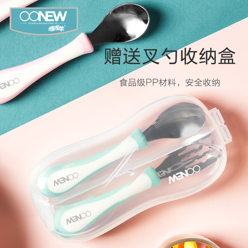 Wowo Niu stainless steel fork spoon set Children chopsticks Baby learning chopsticks Eating training fork spoon Baby auxiliary food spoon