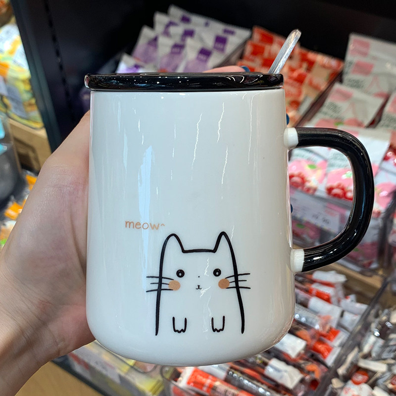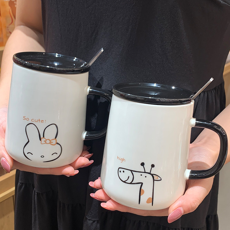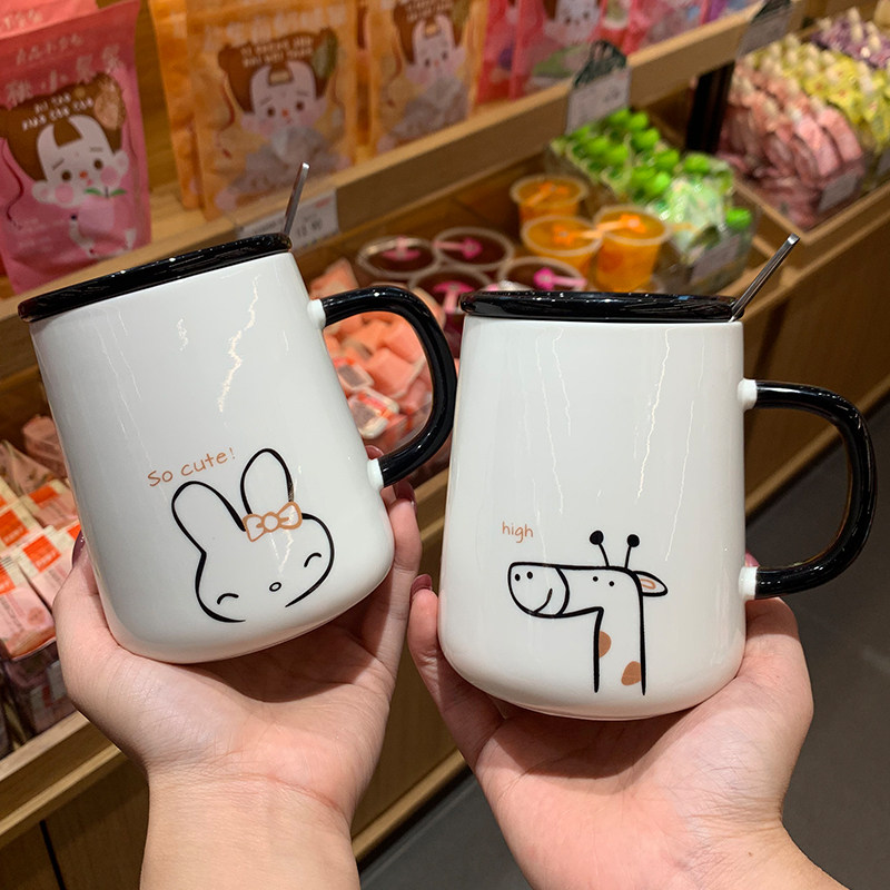 Drink Water Cups Creative Personality Trends Mark Cups Ceramic Cute Coffee Cups With Lid Spoon Female Brief Joins Home