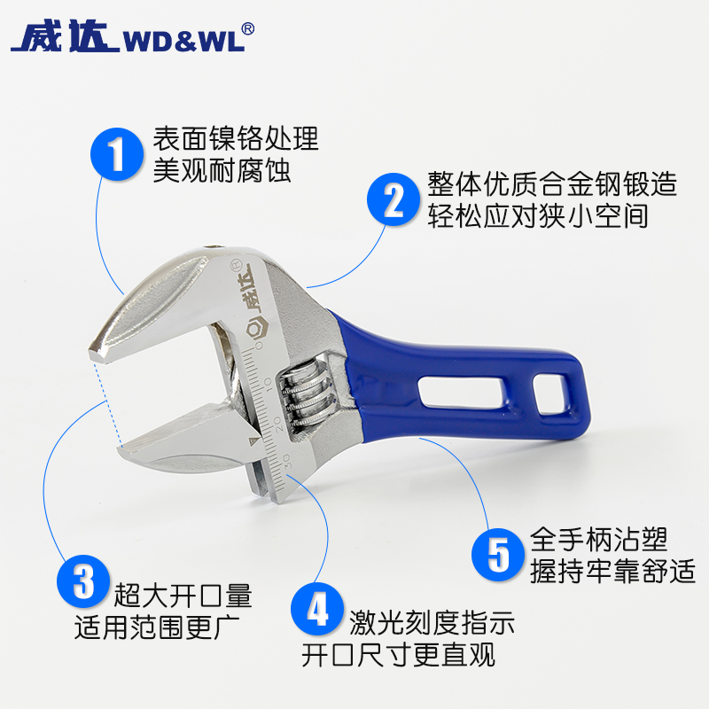 Weda Live Wrench Short Handle Bathroom Oversized Opening 6 Inch 8 Inch Chrome Plated short handle Living Mouth Tube Pliers Plate Tool Ratchet