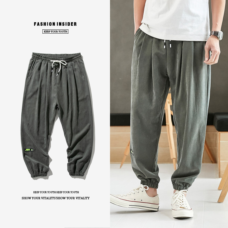 Weighing large size men's casual pants summer thin tide loose trend fat fat wear Harlen sports small foot nine-pants
