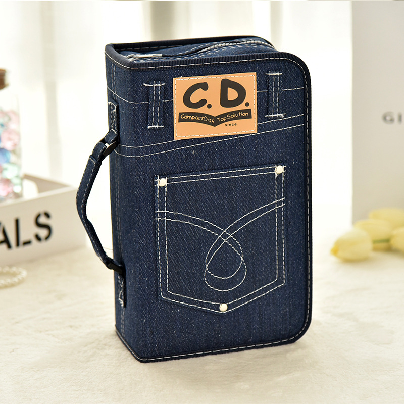 Fashion 60 128 pieces denim CD bag CD storage student car Office CD bag music DVD finishing bag