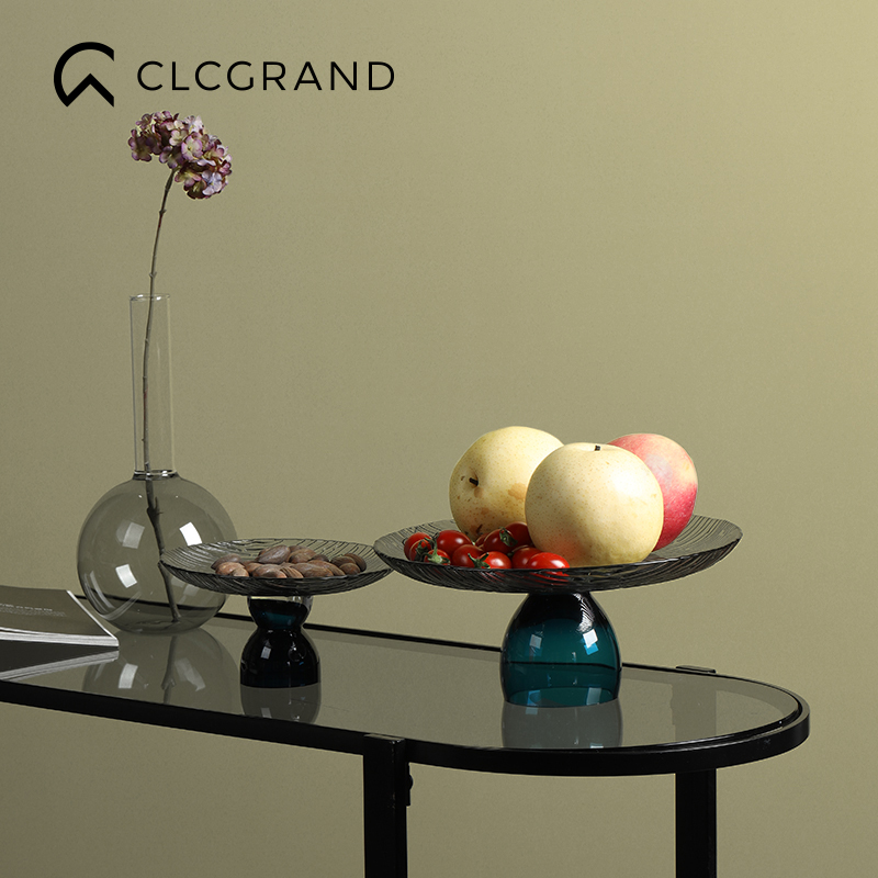 Creative modern glass fruit plate ornament living room home coffee table snack dried fruit dining table plate personality light luxury
