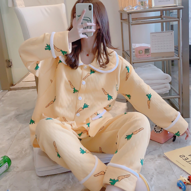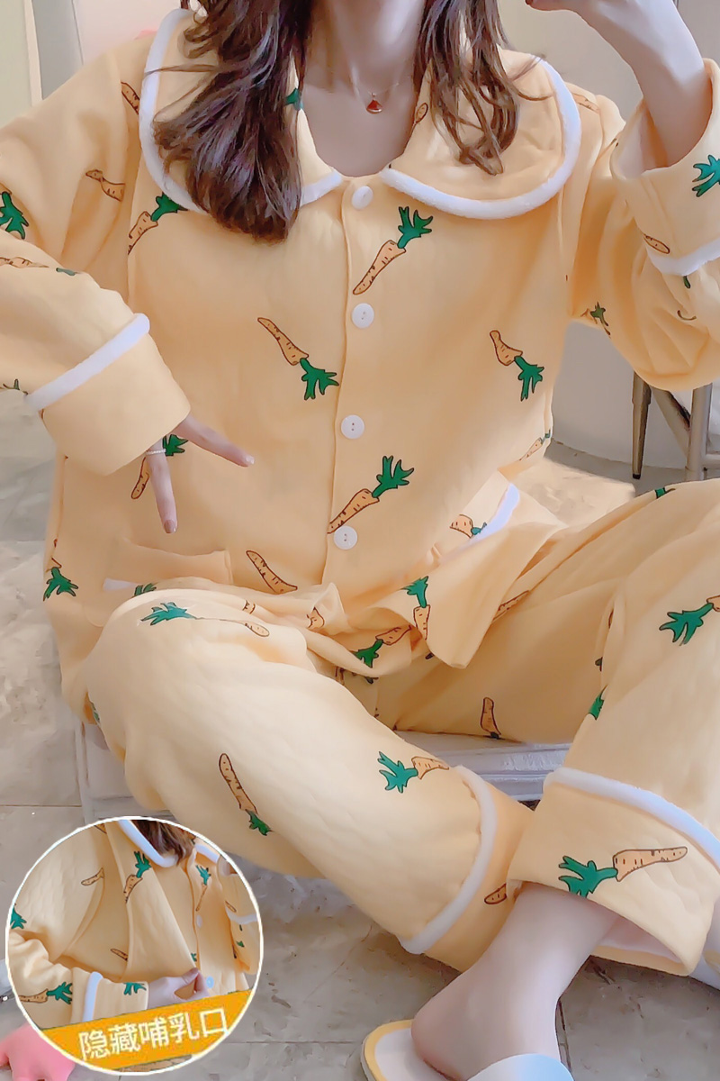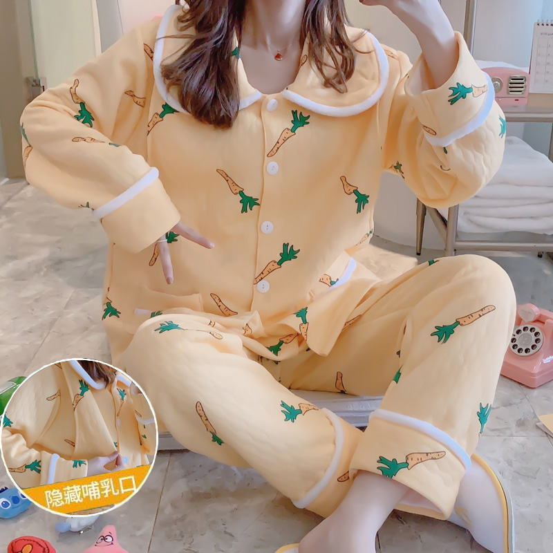 Pregnant women pajamas breastfeeding confinement clothing October interlayer 9 autumn and winter thickening postpartum nursing homewear suit tide