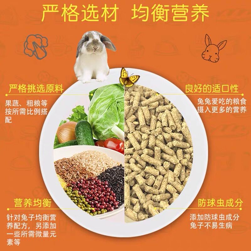 Pet rabbit food rabbit feed 200% rabbit baby rabbit food 10 breeding grade high-end rabbit food 5 kg packed in a whole box