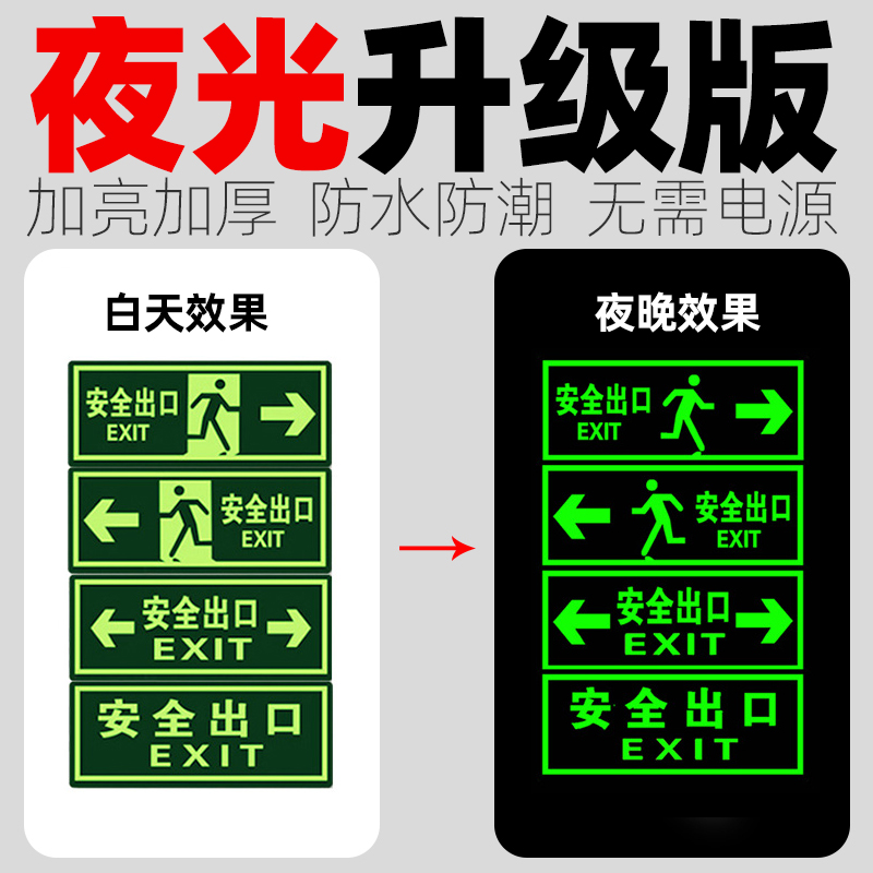 Fluorescent signs wall stickers safety exit channel signs emergency warning emergency escape signs